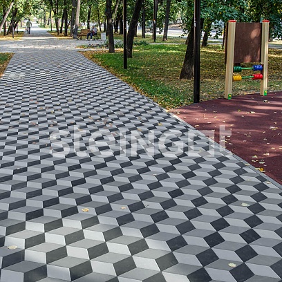 Одна из самых актуальных и распространенных форм для объектного мощения во всем мире. Ромб – очень простой в укладке формат, при этом один из самых эффектных. Сочетание всего нескольких цветов или оттенков и несложных схем раскладки позволяют дизайнерам получить уникальные узоры мощения с эффектом меняющейся глубины и объема. Это одна из немногих форм, с помощью которой можно получить 3D узор.